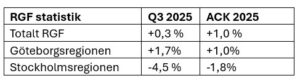 Stockholmsområdet fortsatte att backa även detta kvartal, -4,5 % jämfört med tredje kvartalet 2024, medan Göteborgsområdet fortsatte öka 1,7 % i samma jämförelse.