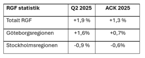 Stockholmsområdet backade -0,9% för andra kvartalet jämfört med andra kvartalet 2024, medan Göteborg ökade 1,6% i samma jämförelse.
