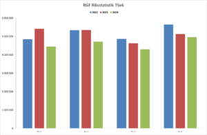 För helåret 2024 var den totala volymen för RGF cirka 18,4 miljarder, vilket innebär en negativ tillväxt på över -10% jämfört med föregående år.