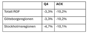 Göteborgs resultat för Q4 var också -3,3%, och helåret slutade på -10,2%.