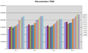 Avseende storstäderna Stockholm och Göteborg, ser vi en tillväxt i Göteborg med +1,8% men där Stockholm viker med -5,4% under kvartal 3.